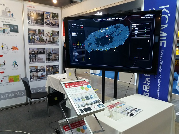 kt는 11월 15일부터 11월 17일까지 일산 킨텍스에서 열린 ‘2017 기상기후산업 박람회(Korea Climate and Meteorological Industry Exhibition 2017)’에 참가해 GiGA IoT Air Map 서비스를 소개했다.