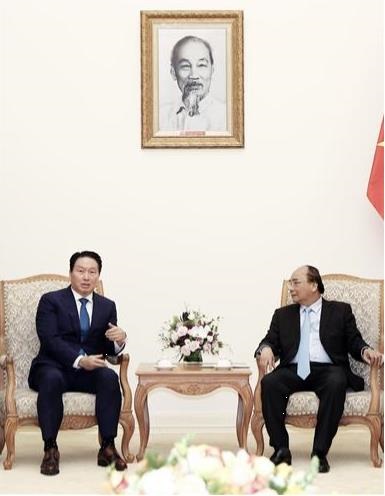 최태원 회장은 지난 23일 베트남 하노이시 총리 공관에서 응웬 쑤언 푹 총리와 만나 SK의 베트남 사업 현황 등을 설명한 뒤 “베트남의 미래 성장전략과 연계해 베트남과 SK가 함께 성장할 수 있는 협력 기반을 만들어 나가길 희망한다”고 밝혔다.
