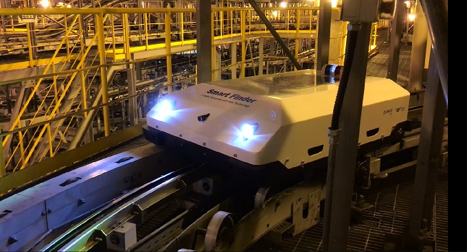 ▲포스코ICT의 스마트 패트롤 트레이가 공항 BHS(Baggage Handling System)을 따라 이동하면서 각 설비의 상태 정보를 모니터링하고 있다.
