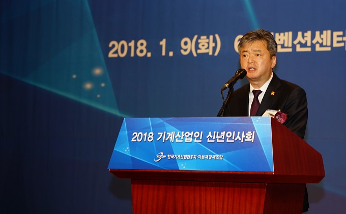한국기계산업진흥회(이하 기계산업진흥회)는 1월 9일 산업통상자원부(이하 산업부) 이인호 차관, 국회 정재호 의원, 이현재 의원, 민경욱 의원 등을 비롯한 기계산업인 300여명이 참석한 가운데 '2018 기계산업인 신년인사회'를 개최했다.