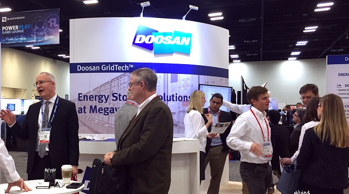 지난해에 이어 2년 연속 참가한 두산중공업과 두산그리드텍은 독립 전시관을 설치하고 북미 발전사들을 대상으로 두산그리드텍이 보유한 ESS 소프트웨어 및 플랫폼 등을 선보였다.