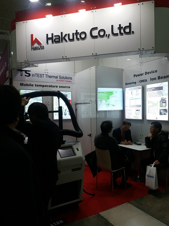 Hakuto는 1월 31일(수)부터 3월 2일(금)까지 코엑스에서 개최되는 ‘세미콘 코리아 2018’에 참가해 회로 디바이스용 파워 디바이스·분석 온도 제어 시스템 ‘THERMO STREAM’을 비롯한 다양한 온도환경시험기 제품을 출품했다.