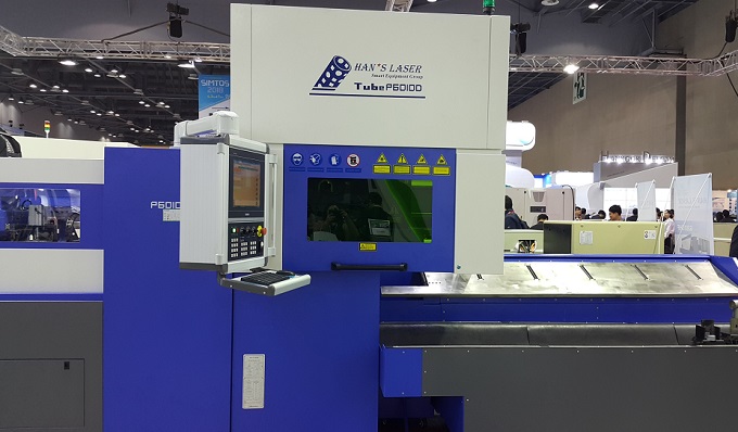 SIMTOS에서 선보인 한스 레이저의 레이저 파이프 절단기(P6010D)는 파이프 절단 전문 장비로 자동 로딩 및 언로딩 시스템, 지능형 시스템, 유연 가공 시스템으로 높은 통합성을 갖고 있다.