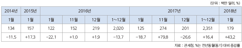 ▲ 공작기계 수출 (2014 ~ 2018.1)
