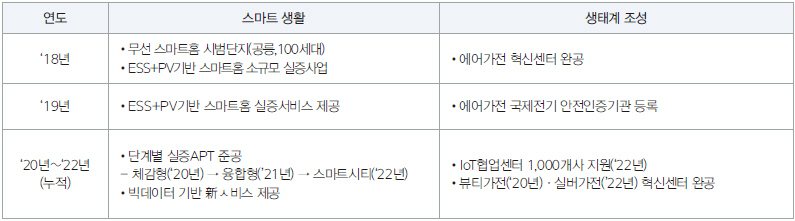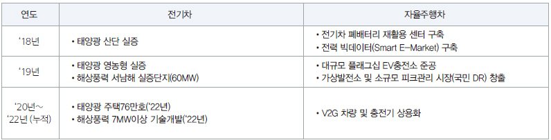 평창까지 자율주행차 고속도로 운행, 전력 빅데이터 ‘스마트 이-마켓(Smart E-Market)’ 구축, 소규모 세대 대상 에너지저장장치+태양광(ESS+PV)기반 전기료 절감형 스마트홈 실증사업 착수 등 국민이 체감할 수 있는 성과들을 창출해왔다.