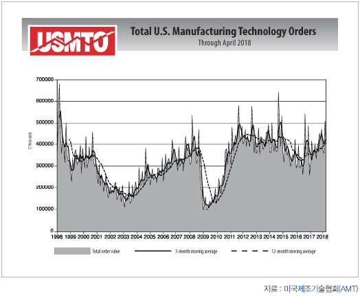 ▲ 2018년 4월 미국 공작기계 수주 현황