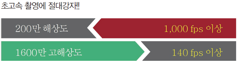 자동차 안전성능 테스티에 활용되어 단 한순간의 이미지를 Full HD 이미지로 정확한 측정과 데이터를 확득할 수 있습니다.