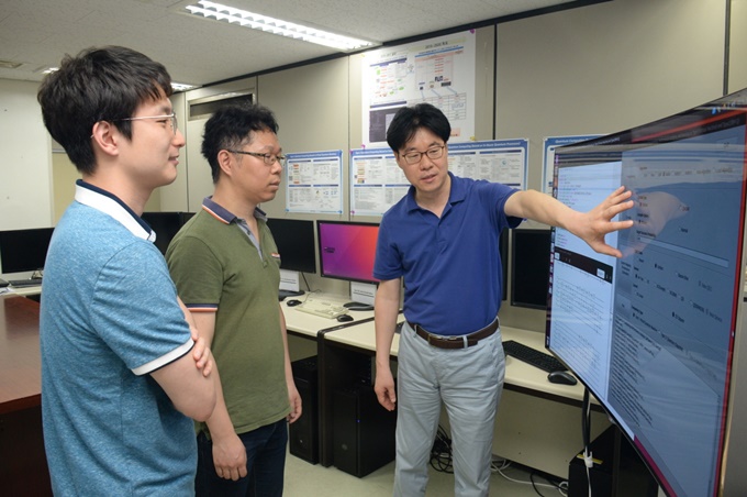 ▲ETRI 연구진이 개발한 양자컴퓨팅 소프트웨어 핵심기술을 시연하고 있다.