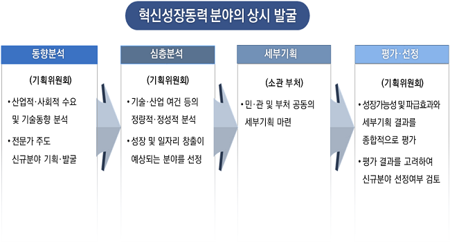 ▲혁신성장동력 분야의 세부 계획 순서