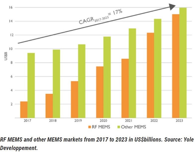 Yole Développement은 "RF MEMS(BAW 필터)는 MEMS 시장 전체를 끌어 올리는 가장 강력한 엔진 중 하나가 될 것"이라며 "2011 ~ 2023년 MEMS 시장의 연평균 성장률(CAGR)은 RF를 제외 경우는 9%, RF MEMS를 포함한 경우는 17.5%로 수직 상승해 나갈 전망"이라고 말했다.