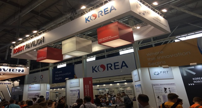 이 자리에서 우리나라는 최근 정부의 한반도 신경제 구상의 핵심 축인 新북방정책 기조에 맞춰 하중물 이송 지원용 웨어러블 로봇, 협동로봇, 유리창 청소로봇, 기상관측용 드론, 드론 컨트롤러 등 로봇 완제품과 서모모터, 스텝모터 등 한국 기업 7개사가 참여한 신시장 창출을 위한 로봇공동관으로 구성했다.