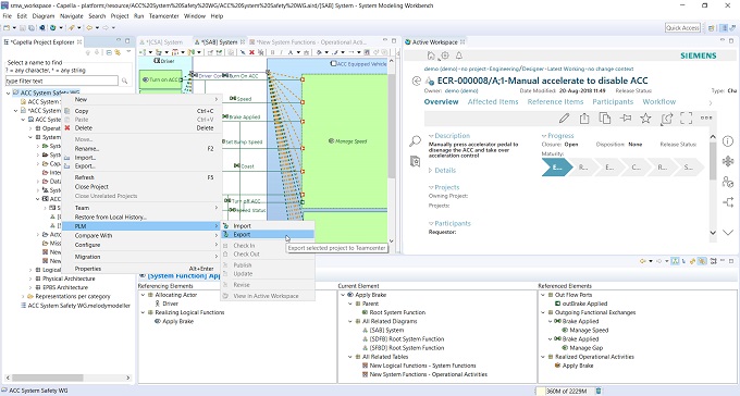 오베오(Obeo)社와 협력으로 개발된 ‘시스템 모델링 워크벤치(System Modeling Workbench for Teamcenter)’는 엔지니어링용 SysML 범용 모델링 언어와 오픈소스 모델링 툴인 카펠라(Capella)를 팀센터에 통합한다.
