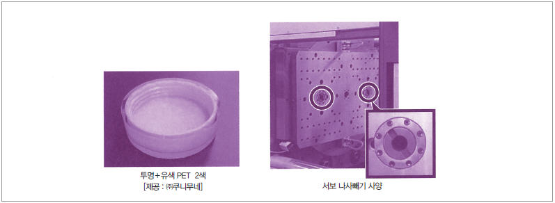 ▲ 그림 2. 서보 나사빼기장치에 의한 2색 성형품