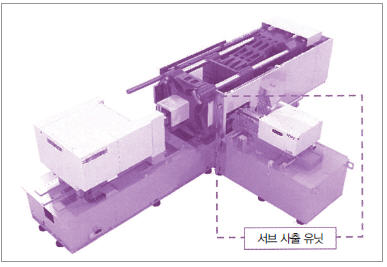 ▲ 그림 3. 서브 사출 유닛이 있는 T형 다색·이재질 사출성형기