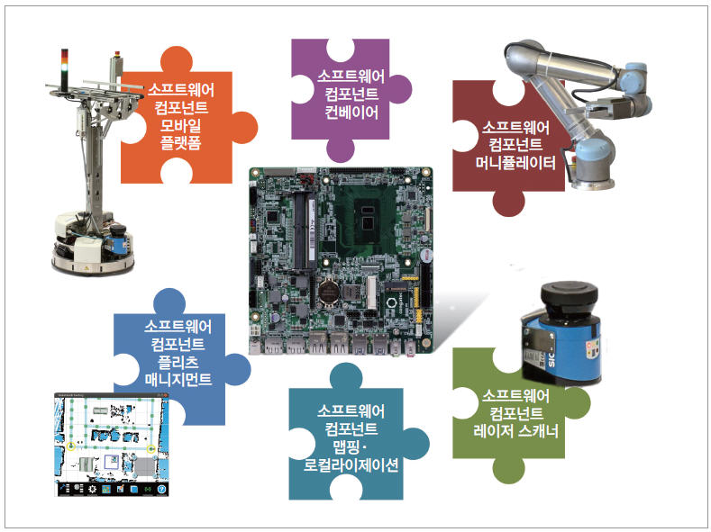 오늘날 첨단 로봇은 매우 복잡한 구조로 되어 있으며 다수의 서브시스템으로 이뤄진다. 다수의 축과 구동 장치로 이루어진 머니퓰레이터(Manipulator)라고 하는 것을 사용하며, 그 끝에 Gtipper 시스템이나 측정 장치 같은 것을 장착할 수 있다. 움직임을 제어하고 물체 인식이나 위치 인식을 위해서 센서 시스템을 필요로 한다. 또 사람과 같은 공간에서 작업할 수 있는 자율적인 협업 로봇들이 등장함으로써 더 많은 기능과 빌딩 블록들이 추가되고 있다. 산업용 환경에서 안전한 인간-기계 상호작용이 가능한 이동형 로봇을 예로 들 수 있다. 또한 ‘인더스트리 4.0’ 환경에서는 주변 기계 및 시스템들과 M2M(Machine to Machine) 인터페이스가 필요하다. 이를 통해서 상호 협력적으로 일할 수 있다. 이러한 모든 로봇들이 극히 강력한 소프트웨어 컴포넌트와 고성능 임베디드 시스템을 필요로 한다.