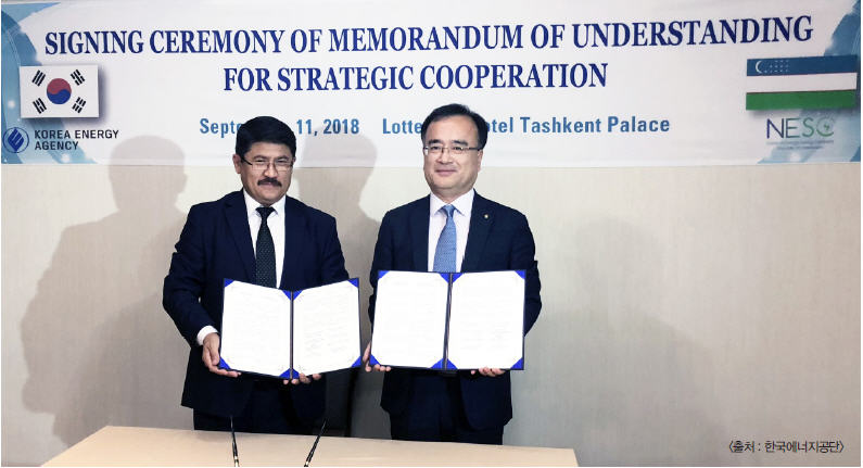 지난 9월 11일, 한국에너지공단(이사장 직무대행 이상홍, 이하 공단)은 우즈베키스탄 국영에너지절약공사(National Energy-Saving Company, 이하 NESC)와 우즈베키스탄의 에너지효율향상 및 재생에너지 보급, 기후변화 대응능력 강화를 위한 업무협약을 체결했다.