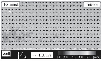 ▲ 그림 10 µPIV 계측에 의해 얻어진 피스톤 벽면 바로 위의 평균 속도 분포