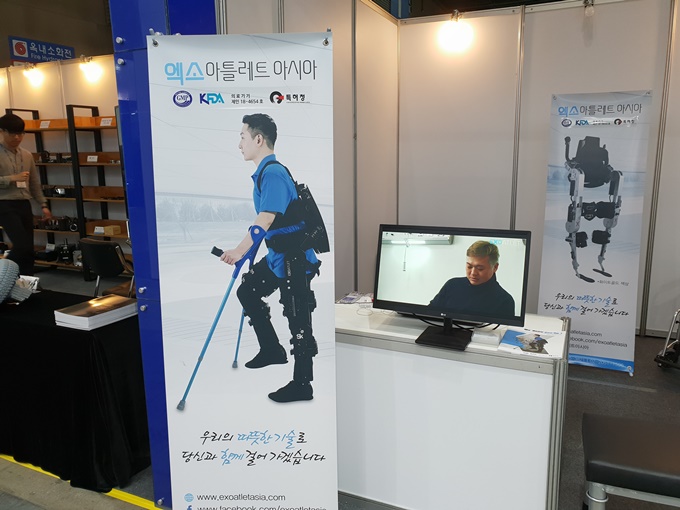 ▲웨어러블 재활 의료 장비인 ‘EAM(엑소아틀레트 메디)’