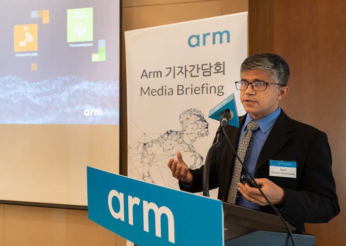 난단 나얌팔리(Nandan Nayampally) Arm 클라이언트 컴퓨팅 사업부장은 “Arm의 관심은 컴퓨터의 제 5세대 물결을 통해 여러가지 기술의 통합이다. 컴퓨팅의 5세대 물결이란, 1단계는 IoT 기반으로 한 센서 등의 엔드포인트를 수집하는 단계다. 2단계는 수집된 데이터를 확장시키고, 3단계는 데이터를 AI를 통해 파악한다”고 설명했다.