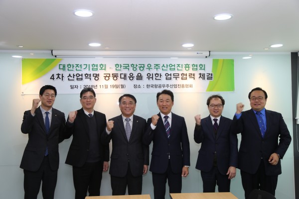 양 기관은 지난 11월 19일, 한국항공우주산업진흥협회(서울 마포구 소재)에서 김동수 대한전기협회 상근부회장과 권오중 한국항공우주산업진흥협회 상근부회장이 참석한 가운데 4차 산업혁명 공동대응 관련 양해각서(MOU) 체결식을 가졌다.
