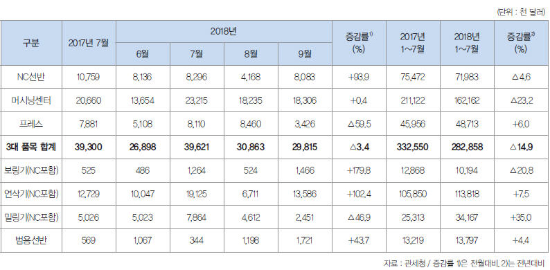 공작기계 시장 동향 (2018년 9월)