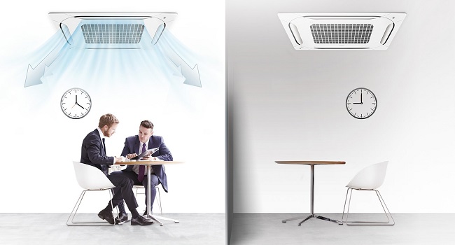 LG전자의 ‘비전 인체감지 천장형 에어컨’은 인체 위치에 따른 기류 제어와 재실자 수, 활동량을 이용한 비전센서 쾌적 제어 기술이 들어간 인공지능형 에어컨이다.