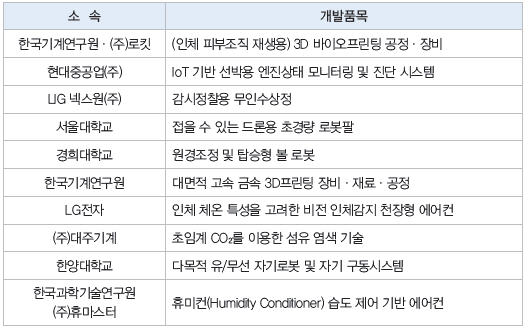 3D 프린팅·IoT·비전센서 등 다양한 분야 기술들 선정돼