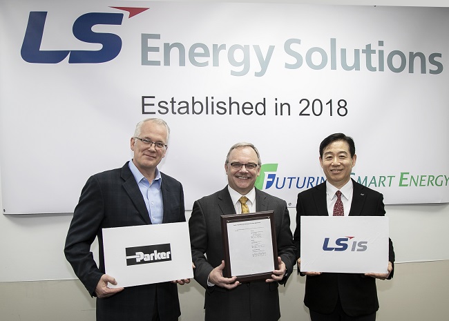 ▲ (왼쪽부터)폴 호벳 파커 하니핀 부사장, 짐 홀셔 LS Energy Solutions 사장, 오재석 LS산전 전력사업본부장이