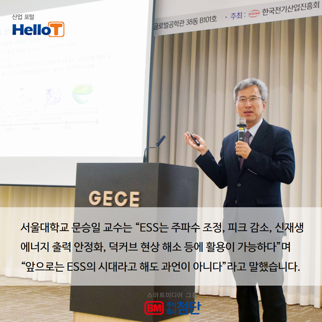 서울대학교 문승일 교수는 “ESS는 주파수 조정, 피크 감소, 신재생에너지 출력 안정화, 덕커브 현상 해소 등에 활용이 가능하다”며 “앞으로는 ESS의 시대라고 해도 과언이 아니다”라고 말했습니다.