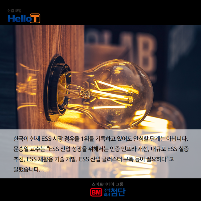 문승일 교수는 “ESS 산업 성장을 위해서는 인증 인프라 개선, 대규모 ESS 실증 추진, ESS 재활용 기술 개발, ESS 산업 클러스터 구축 등이 필요하다”고 말합니다.