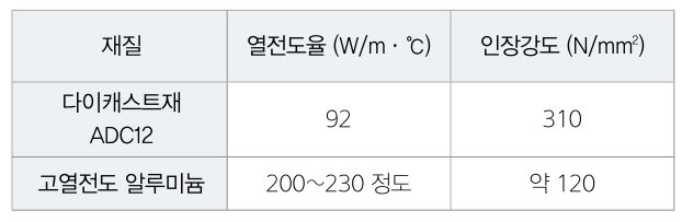 ▲알루미늄 다이캐스트 재료의 물성 비교