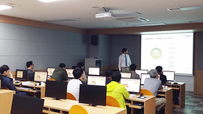 ▲교육생들이 세미나실에서 금형 이론 수업을 받고 있다.