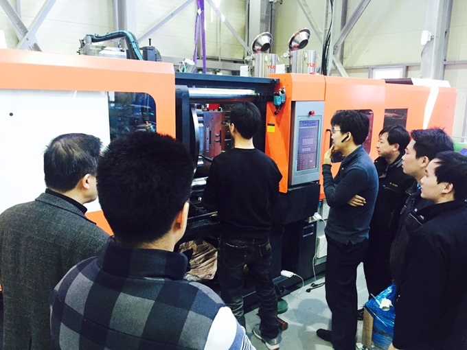 ▲사출성형기에 대한 실습 교육을 받는 교육생들
