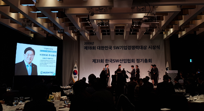 ▲비젠트로㈜는 제18회 대한민국 SW기업경쟁력대상 IT 솔루션 부분에서 우수상 수상을 수상했다.