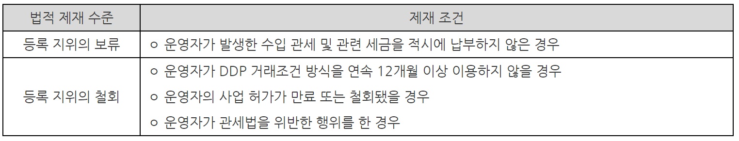 ◯ 전자상거래를 통해 유입되는 수입 제품에 대한 규제 (제 10조) (표 7 참조)