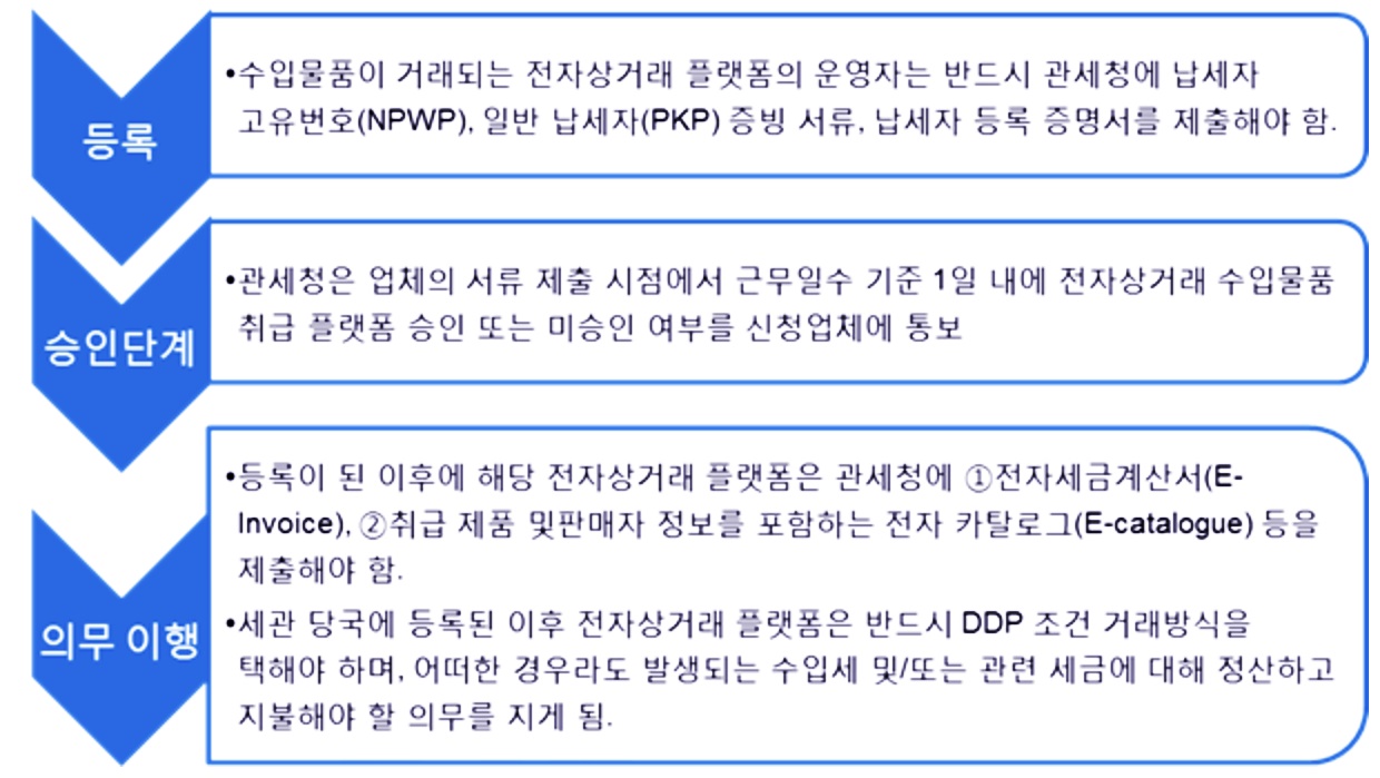 아마존(Amazon)과 같이 인도네시아에서 사업장을 두고 있지 않은 해외 전자상거래 플랫폼에 대해 규제할 수 있는 방안은 마련돼 있지 않은 상황이다.