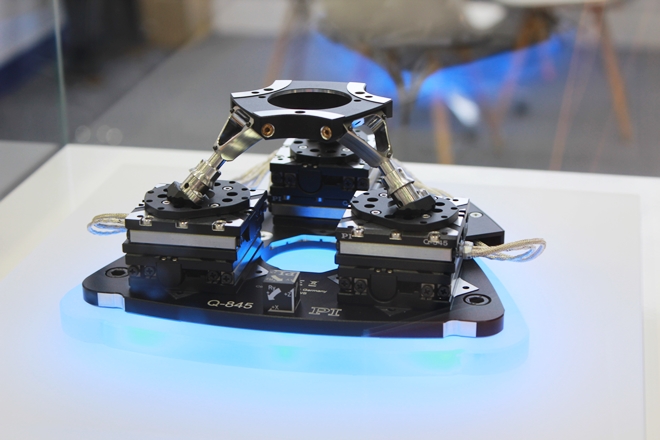 PI의 Q-845는 작은 크기와 나노미터 분해능이 특징이며, DC 모터나 보이스코일 드라이브로 구동됐던 일반 헥사포드와는 달리 피에조 관성 드라이브로 구동된다. 특히 Q-845는 크로스 롤러 베어링을 사용해 더욱 강하고 예하중도 적기 때문에 마찰을 줄이고 매끄럽게 달릴 수 있으며 높은 가이딩 정확도를 보장한다.
