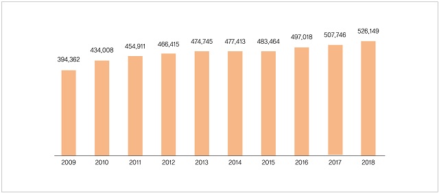 한국그린캠퍼스협의회는 3월 4일, 지난해 국내 총 전력소비량이 52만 6,149GWh라고 발표했다. 국내 전력소비량은 지난 10년간(2009-2018년) 연평균 3.2%가 넘는 증가 추세를 보이고 있다. 전력소비 증가율은 2010년 10.1%로 정점을 찍은 후 2011년 4.8%, 2012년 2.5%, 2013년 1.8%, 2014년 0.6%로 둔화되어 왔지만, 2015년부터 1.3%, 2016년 2.8%, 2017년 2.2%, 2018년에는 3.6% 상승했다.