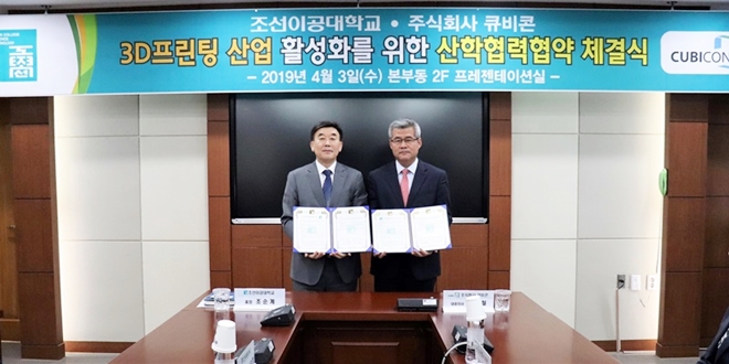 지난 3일, 하이비젼시스템의 3D프린터 전문 자회사 큐비콘이 조선이공대학교와 3D프린팅 산업 발전과 중추적 역할을 담당할 기술 인력의 양성 및 확보를 위한 업무협약을 체결했다고 밝혔다.