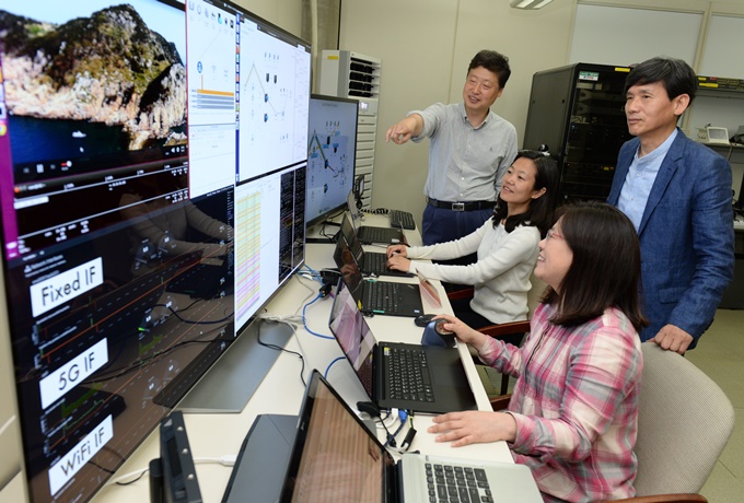 ▲ ETRI 연구진이 다중 엑세스 트래픽 결합기술을 연구하고 있다.