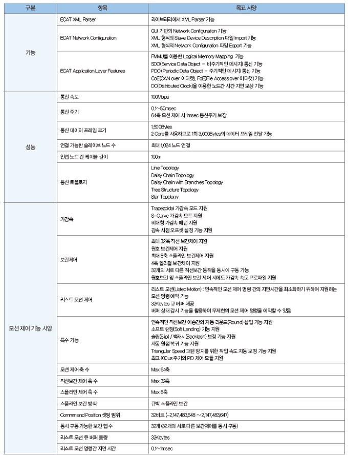 장비업체, 서보업체와의 기술 제휴를 통한 철저한 사전 검토 및 검증으로 사용자가 필요로 하는 제품의 실리성과 기존 모션네트워크 및 이더캣 제품의 장단점을 분석하여 장점은 살리고 단점은 보완했다.