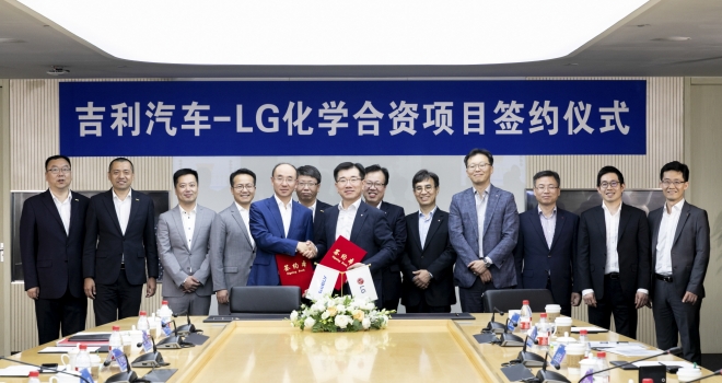 이와 관련 LG화학은 12일 중국 저장성 닝보시에 위치한 지리 자동차 연구원에서 지리 자동차 펑칭펑 부총재, LG화학 전지사업본부장 김종현 사장 등이 참석한 가운데 합작법인 계약을 체결했다고 밝혔다.