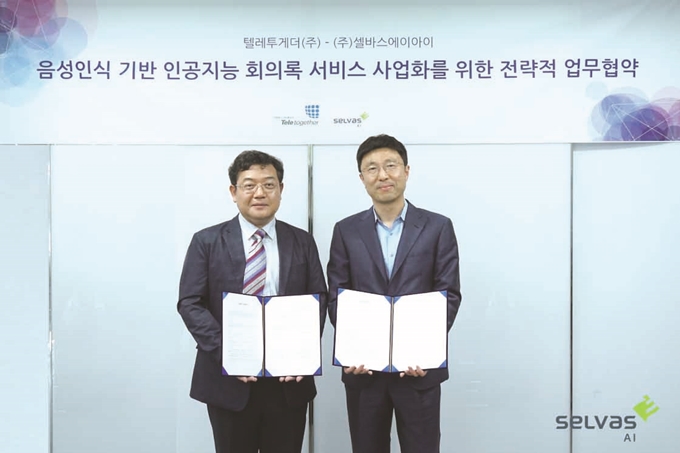 인공지능 전문 기업 셀바스 AI가 컨퍼런스콜사업자 ‘텔레투게더(Teletogether)’와 '지능형 미팅 비서' 서비스 구축을 위한 업무협약(MOU)을 체결했다고 3일 밝혔다.