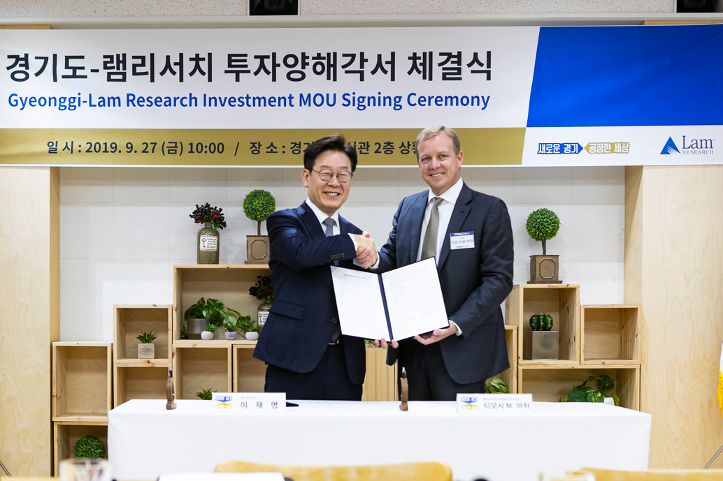 경기도청에서 열린 협약식에는 램리서치 CEO 팀 아처(Tim Archer), 이재명 경기도지사, 램리서치코리아 서인학 대표이사 등 20여 명의 양측 주요 관계자들이 참석했다.