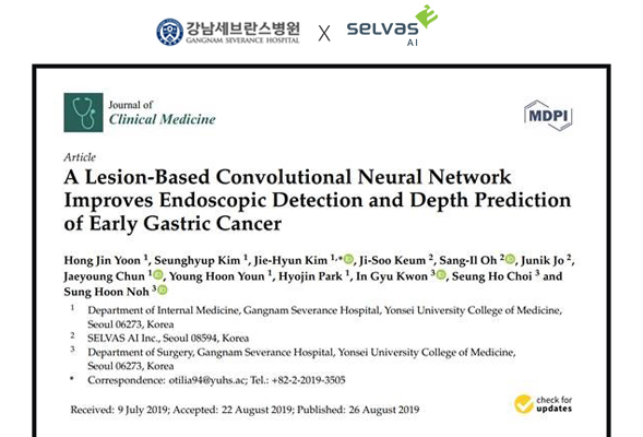 셀바스 AI - 강남세브란스병원, AI 활용 조기 위암 진단 연구 논문 'Journal of Clinical Medicine'에 게재
