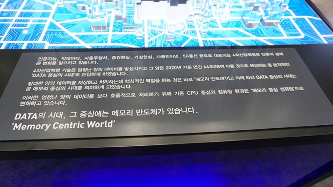 이달 8일부터 11일까지 개최된 반도체대전(SEDEX) 2019의 SK하이닉스 부스 앞에 놓인 'Memory Centric World'에 적힌 일부 문구이다. 이 말처럼 SK하이닉스는 이번 전시회에 데이터 시대를 위한 다양한 메모리 반도체를 선보였다.