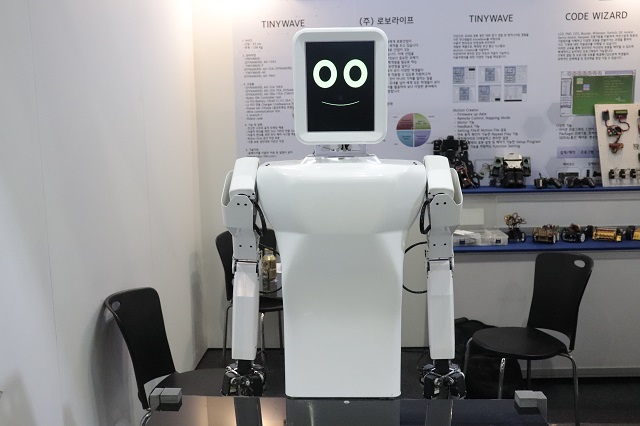로보라이프가 ‘2019 로보월드’에 참가해 ‘TINYWAVE’ 등 에듀테인먼트 휴머노이드 로봇을 선보였다.