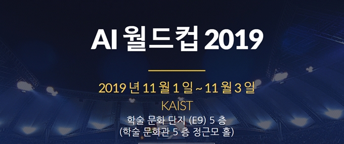 한국과학기술원은 오는 11월 1일부터 3일까지 대전 본원 KAIST 학술문화관 5층에서 ‘국제 AI World Cup(인공지능 월드컵) 2019’를 개최한다고 밝혔다.