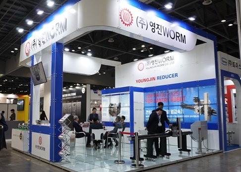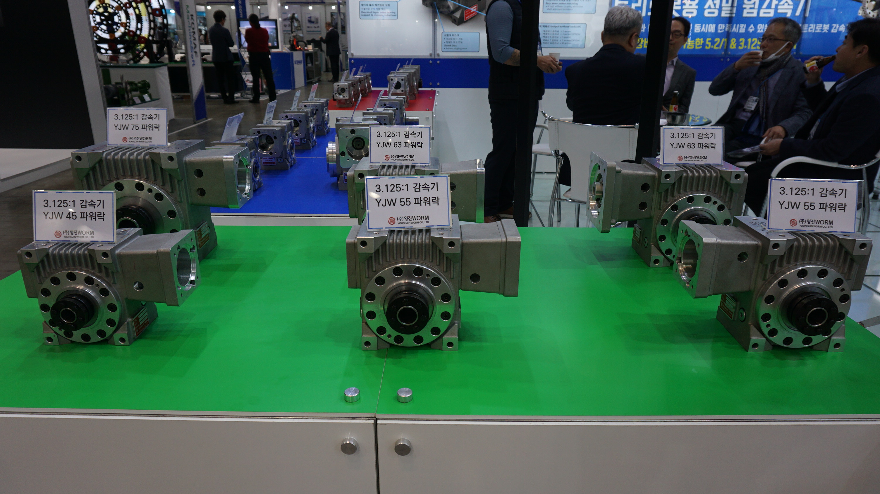 서보용 정밀 WORM 감속기(듀얼리드박스) 전문 생산업체인 영진WORM(영진웜)이 일산 킨텍스1 전시장에서 개최 중인 2019 한국기계전에서 다양한 산업 분야에 적용할 수 있는 최신 감속기를 전시했다.