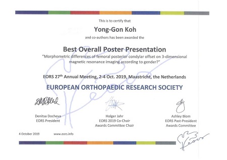 그 결과 ‘남녀 성별 및 환자 별로 무릎구조의 형태학적 차이가 있어 환자 맞춤형 수술이 필요하다(Gender differences exist in rotational anatomy of the distal femur in osteoarthritic knees using MRI.)’는 임상결과 논문을 발표했다는 것.